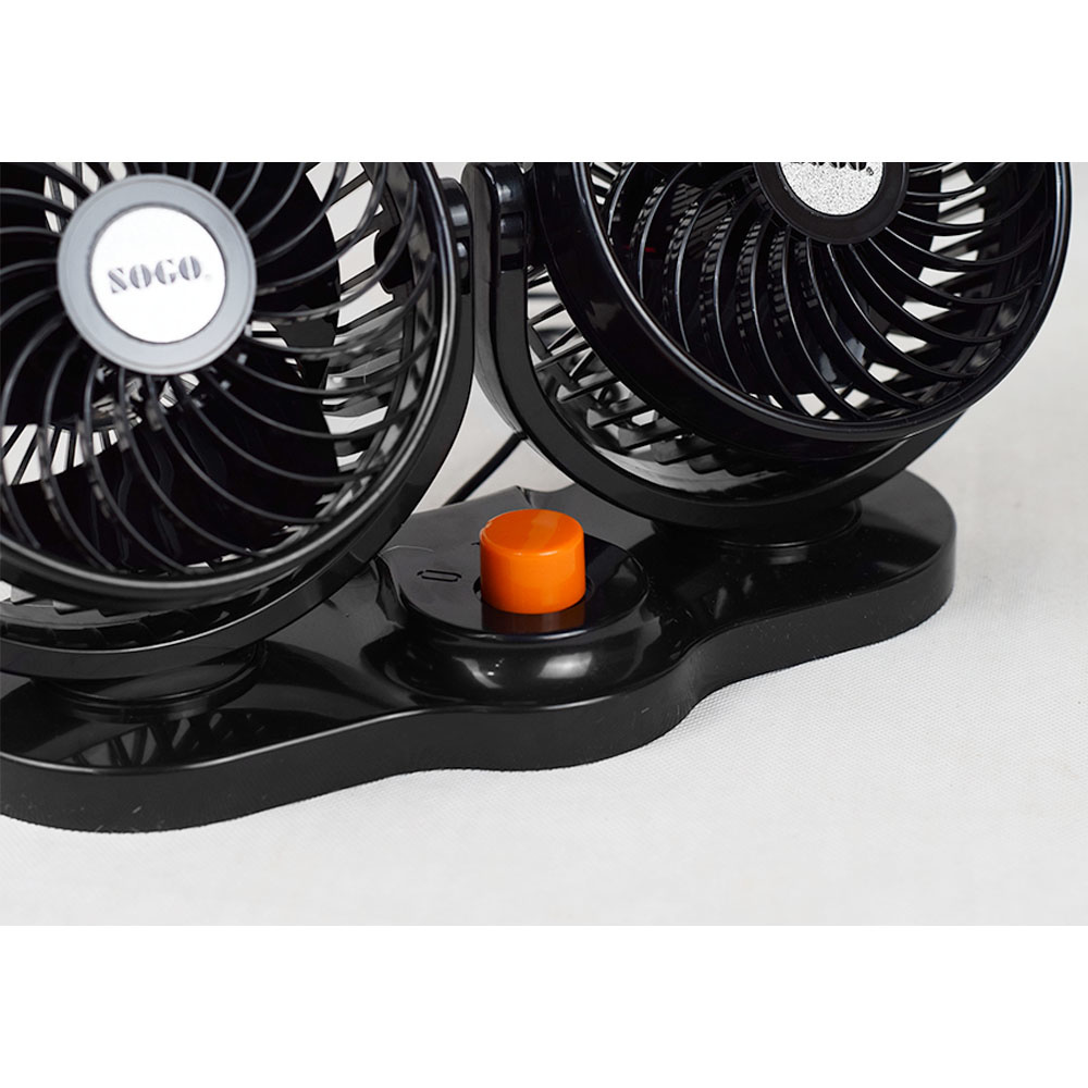Sogo Car Dual Head Fan, 360° Rotatable - 2 Speed | 12 V - Large Size