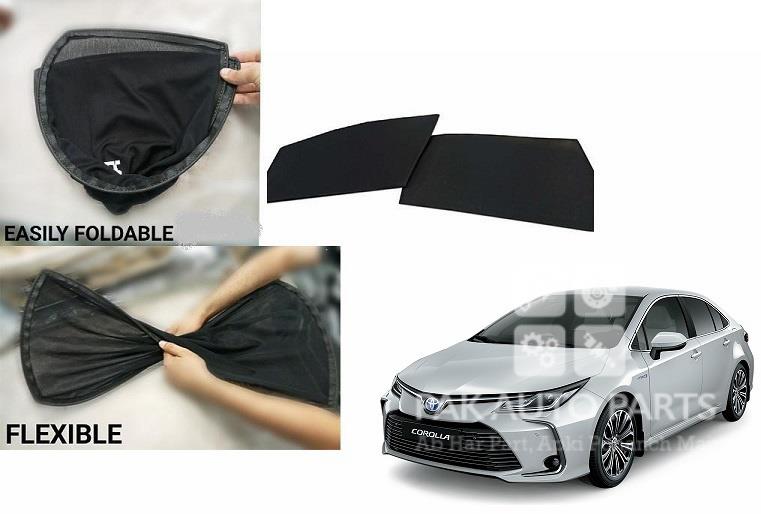 Toyota Corolla 2014-2023 (Grandy, Gli, Xli & X) Foldable Sun Shades 4Pcs Set | Jersey material | Heat Proof | Dark Black